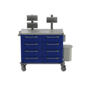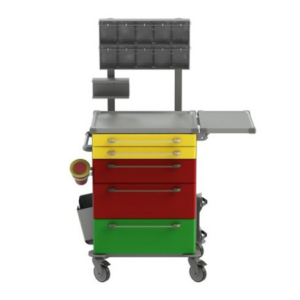 Převazový vozík 08 je vozík na převazy. Vzorová sestava vozíku pro převazy pacientů. Produkt lze upravit podle požadavků a potřeb zákazníka. Vybavení vozíku na obrázku viz popis níže.