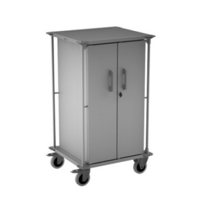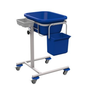 Konstrukce vozíku může být ocelová, ošetřená šedou antimikrobiální barvou, nebo v nerezovém provedení AISI 304. Vozík má antivibrační výztuhu.